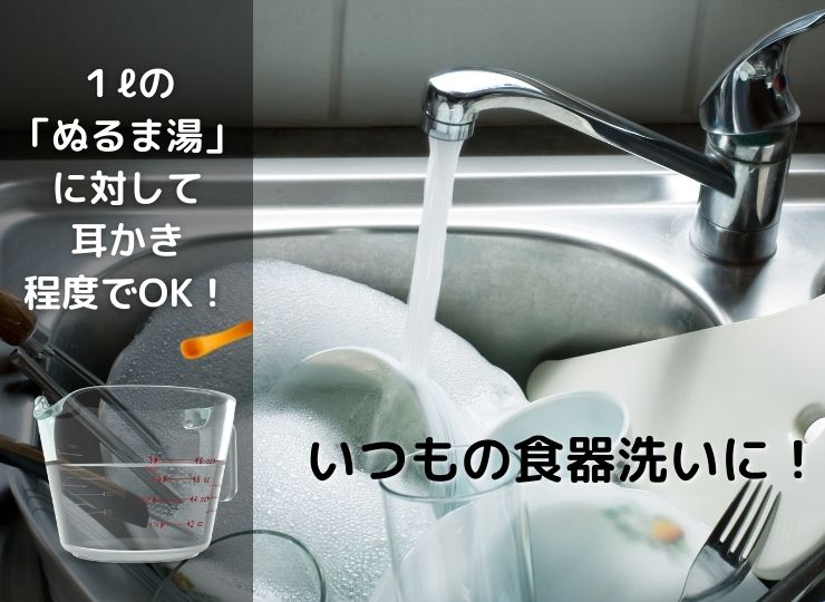 1リットルのぬるま湯に対して、耳かき程度で溶かしてお使いください。