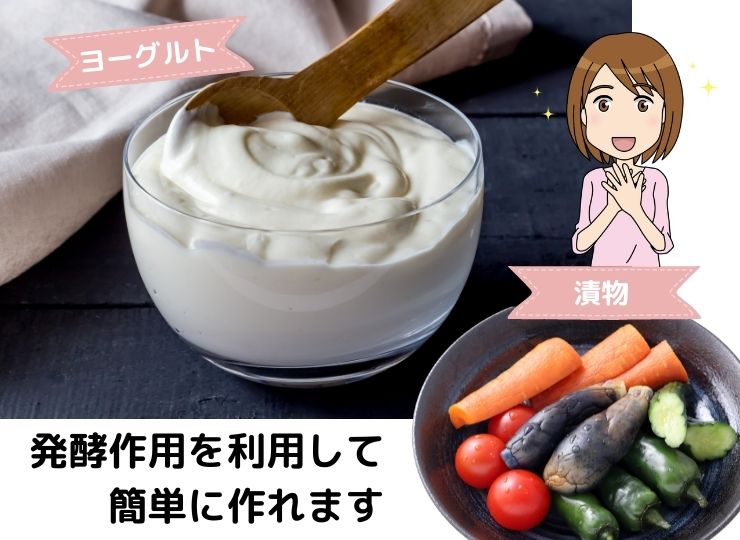 発酵作用を利用して、ヨーグルトや漬物を作ってください。