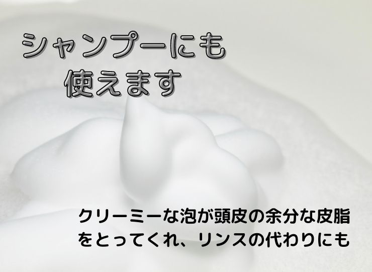 手のひらでよく泡立ててから地肌を丁寧に洗います。髪の長い方は、お湯にごく少量の「万能粉石鹸」えみな-EXTRA-、「万能粉石鹸」emina99-Extra-、「液体石鹸」えみな-Watwer-extraを入れて洗ってください。リンス代わりにもなります。